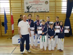 1 czerwca w Słupsku odbyły się Otwarte Mistrzostwa Polski IMAF organizowane przez klub Słupski Klub Karate-Jiu-Jitsu Spartans. Mistrzostwa z roku na rok przyciągają coraz większą liczbę zawodników. W tym roku do rywalizacji stanęło ponad 200 zawodników z 19 klubów. Nasz Klub wystawił reprezentację złożoną z 7 zawodników, która jak zwykle stanęła na wysokości zadania. Startowaliśmy konkurencjach kata, walkach karate (ippon i sanbon kumite) oraz w kickboxingu (formuła semi kontakt). Zdobyliśmy łącznie 11 medali (3 złote, 6 srebrnych i 2 brązowe medale), zajmując tym samy w klubowej klasyfikacji medalowej 6 miejsce (zostawiając za sobą 13 klubów). Konkurencje karate odbywały bez podziału na kategorie wagowe. Najlepiej w naszej ekipie spisała się Kamila Gniadek zdobywając 3 medale, w tym dwa złote. Oto wyniki poszczególnych zawodników: