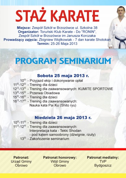 W imieniu Klubu Ronin z Torunia zapraszamy na staż karate.