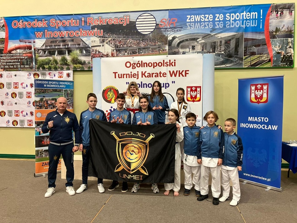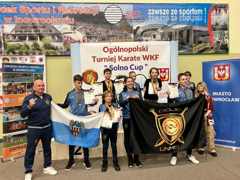 W sobotę 25.11.2023 r. w Hali Widowiskowo Sportowej w Inowrocławiu rozegrano VII Turniej Karate WKF Solno Cup. Organizatorem imprezy był Inowrocławski Klub Sportowy Karate. W zawodach wystąpiło 250 zawodników w wieku od 5 do 15 lat w konkurencjach kata i kumite. Na zawodach nie zabrakło naszych młodych zawodników, którzy spisali się bardzo dobrze zdobywając 6 złotych, 1 srebrny i 3 brązowe medale. Gratulacje dla debiutantów Marysi, Oliwii i Kajtka pierwsze zawody i zdobyte medale.
