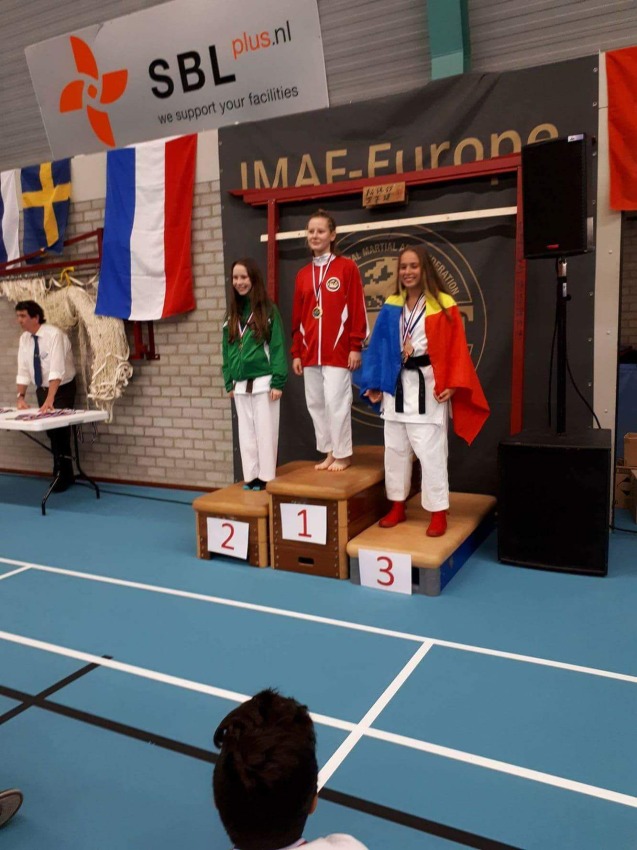 W dniach 14-15.10.2017 r. w Landgraaf w Holandii zostały rozegrane Otwarte Mistrzostwa Europy Federacji IMAF w karate, kobudo i ju-jutsu. W reprezentacji Polski w konkurencji karate wystąpiły dwie zawodniczki Kubu Karate Shotokan Dojo Toruń. Obie spisały się doskonale Amelia Jaroszewska w konkurencji kumite ( walki ) młodziczek 12-13 lat zdobyła 1 miejsce wygrywając przed czasem 4 walki. Na drugim miejscu w konkurencji kumite kadetek 14-15 uplasowała się Nadia Różańska z dorobkiem 3 wygranych walk. Walki w Federacji IMAF są rozgrywane bez podziału na kategorie wagowe. Amelia to również tegoroczna brązowa medalistka Pucharu Polski w Karate WKF oraz zwyciężczyni Międzywojewódzkich Mistrzostw Młodzików Strefy B w Karate WKF z maja tego roku rozegranych w Pleszewie. Karate WKF jest dyscypliną olimpijską i zadebiutuje na Olimpiadzie w Tokio w 2020 roku.