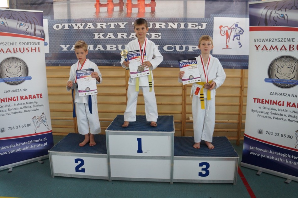 1 października w Osielsku odbył się turniej WKF Yamabushi Cup. Na matach zameldowało się około 440 zawodników z klubów z całej Polski. Turniej, który otworzył dla nas sezon startowy przyniósł nam dwa brązowe medale, które wywalczyli: Jakub Boniecki w kata żółtych pasów 7 lat i młodsi oraz Kornelia Usarzewicz w kumite indywidualnym młodzicek 12-13 lat -50 kg.
